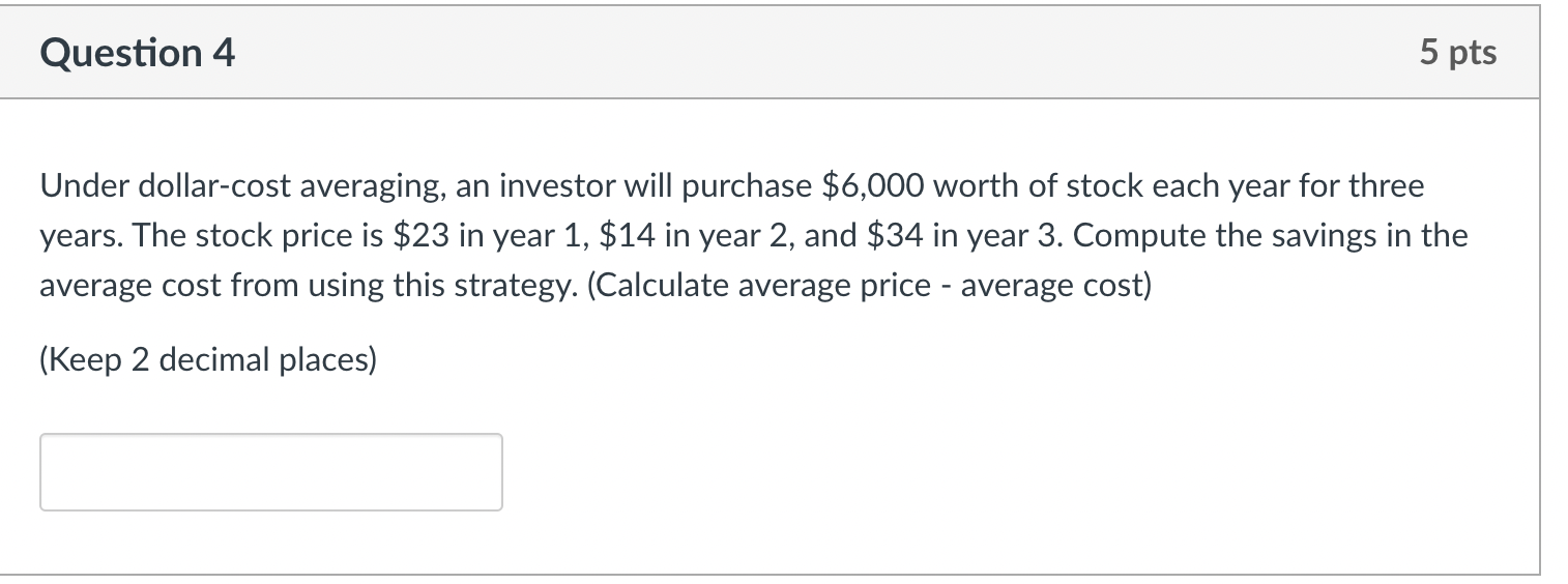 Solved Question 4 5 Pts Under Dollar Cost Averaging An Chegg Com